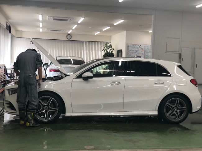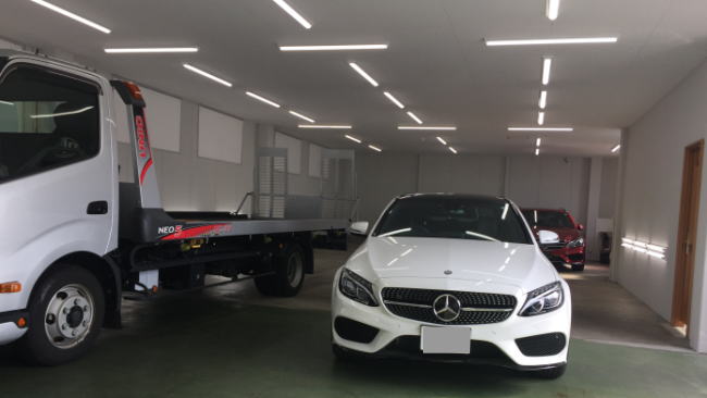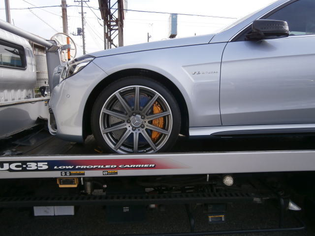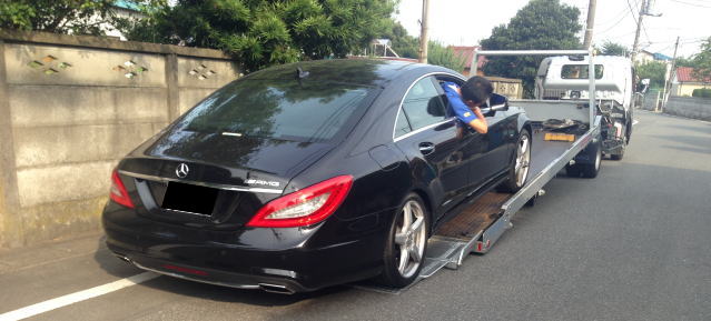 ベンツCLSですが、フィルムのお客様のご自宅にセルフローダーで引取です。お客様のお車を安心してお預かりさせていただき、ご返却をする。高級車を扱う者にとっての基本姿勢です。